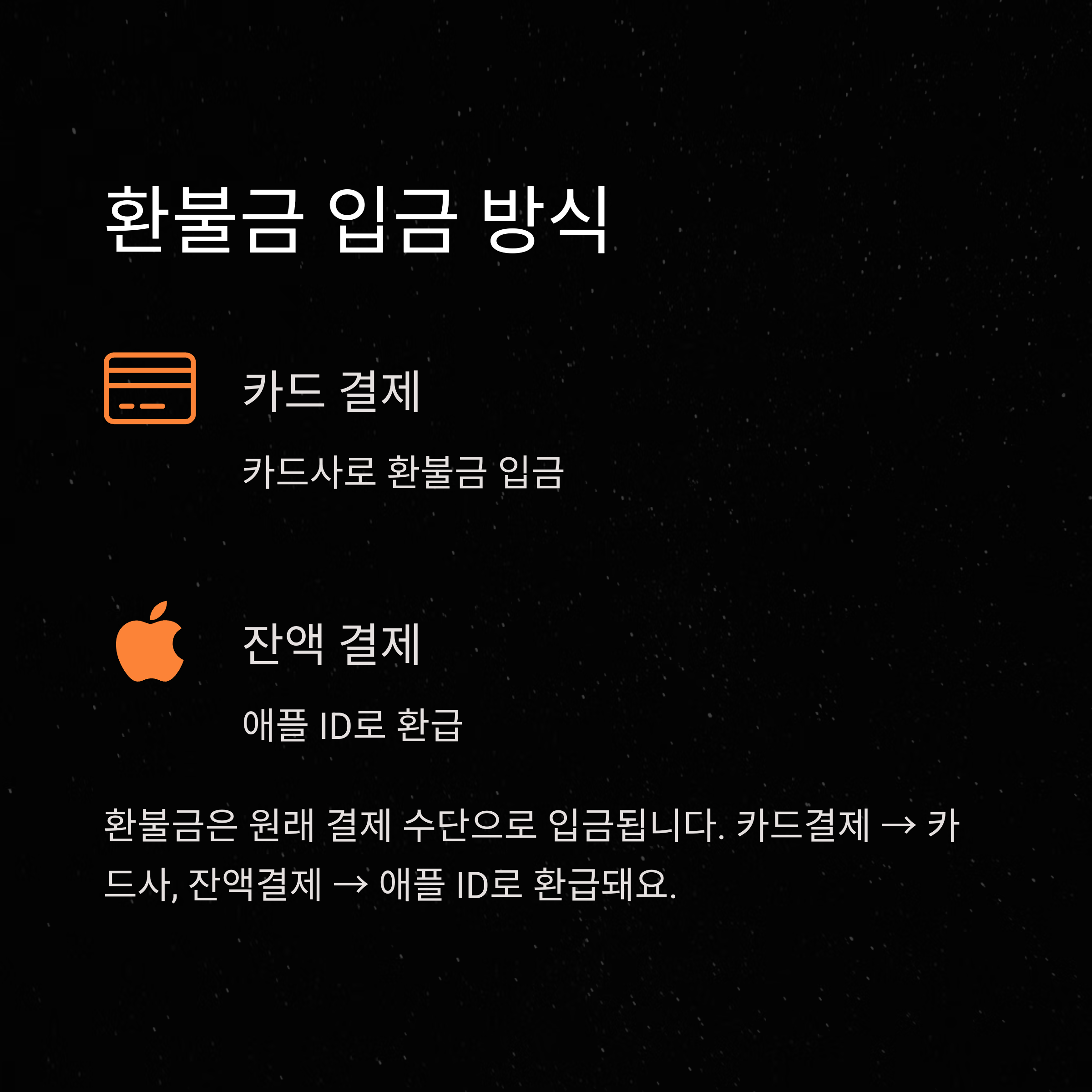 A. 원래 결제한 수단(카드, 애플 ID 잔액 등)으로 입금됩니다.